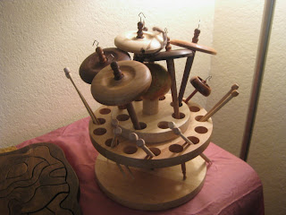 And my beautiful drop-spindle that Jennifer's daughter, Joey, picked out for me (made out of maple and cherry wood), along with my lovely niddy noddie made out of wood from an apple tree. So beautiful and I'm sure will become well used over the years. Spinning is definitely addicting!